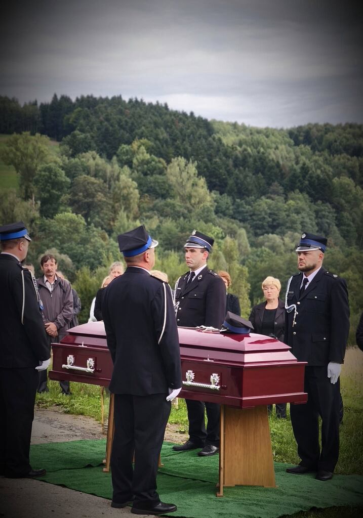Jego przyjaciele z Ochotniczej Straży Pożarnej z wielką godnością i sercem nieśli trumnę. To piękny, symboliczny gest braterstwa i wdzięczności.
